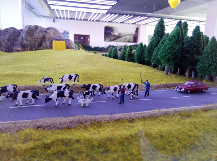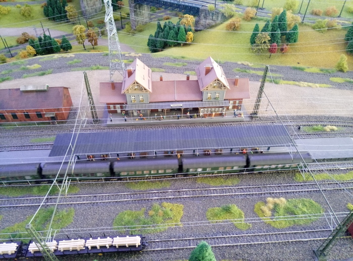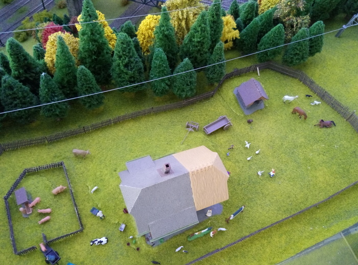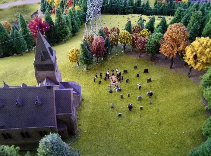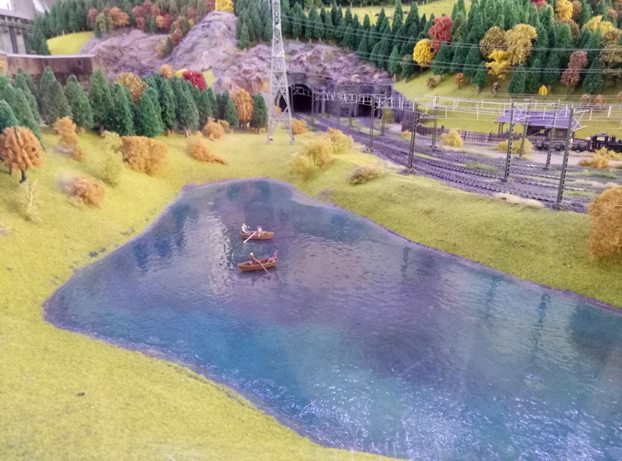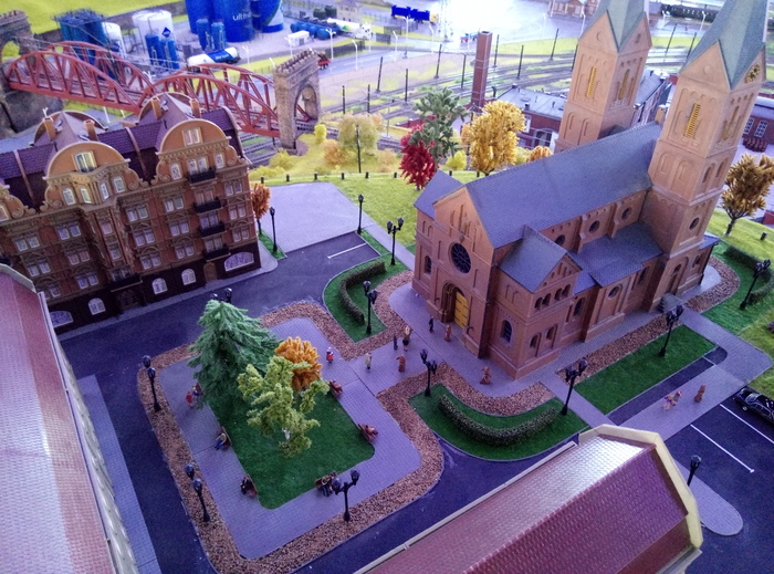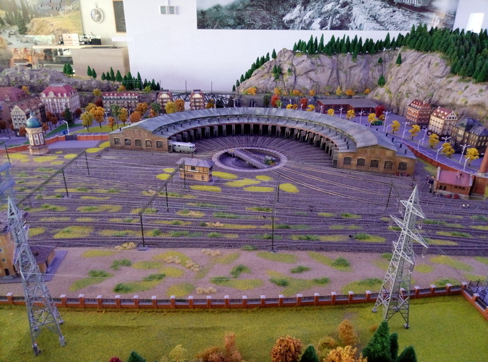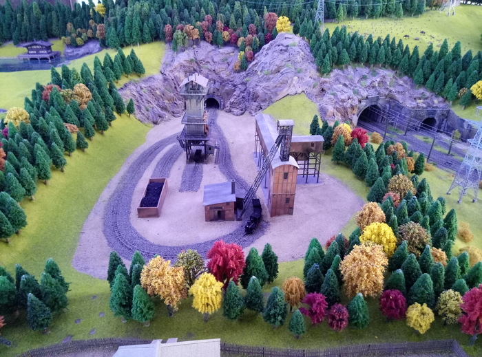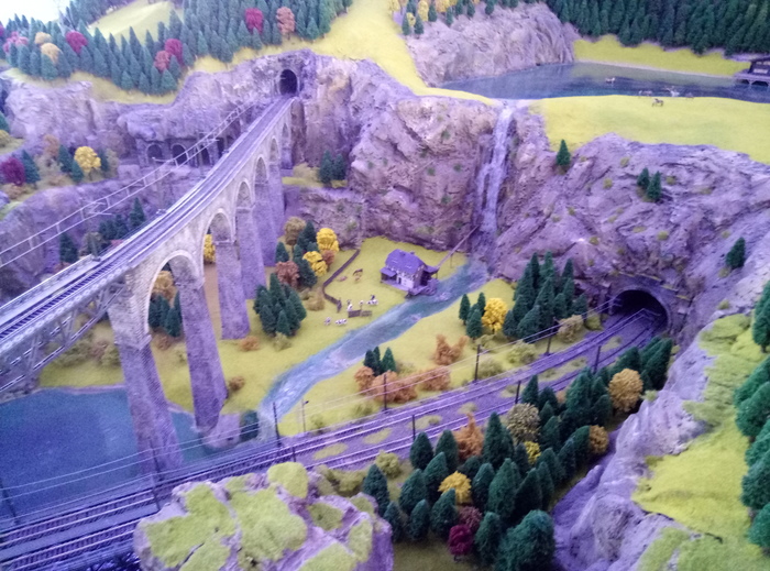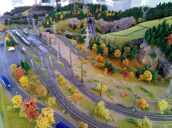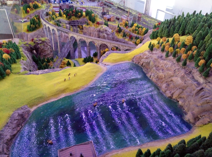 На 70-ти квадратных метрах, покрытых горами, зданиями, мостами и поездами, энтузиасты построили разветвленную железную дорогу. Поезда по ней мчатся мимо миниатюрных вокзалов, фабрик, жилых домиков. Почти всё здесь сделано вручную.