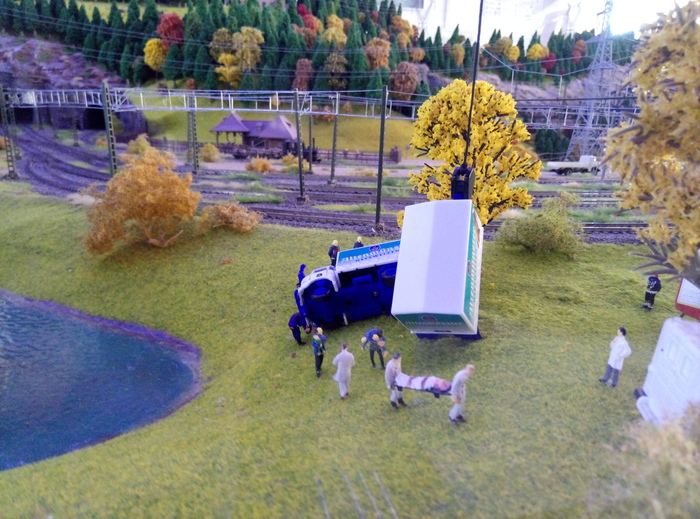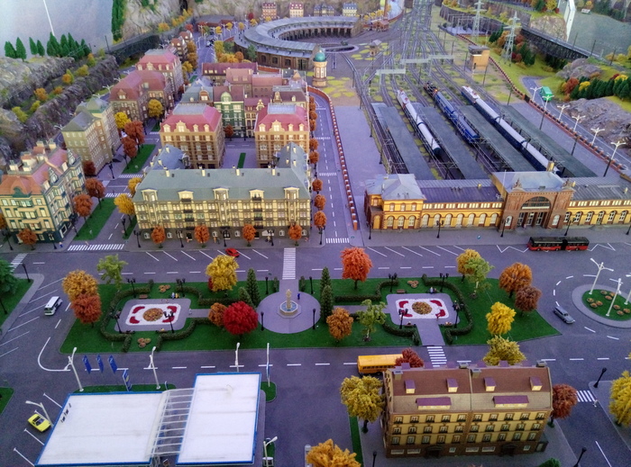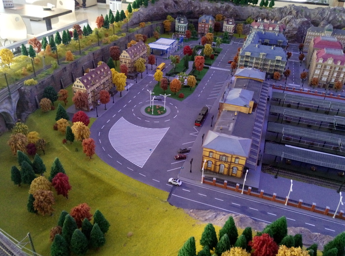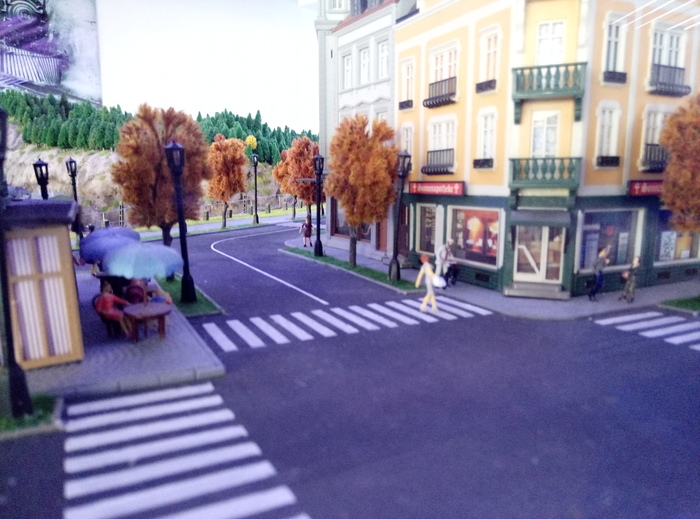 Диорама поделена на три зоны: промышленную, жилую и вокзал. В первой есть цементный завод и пивная. Жилая зона состоит из выдуманного города с заправками и прочими элементами. Вокзал — одна из красивейших зон.