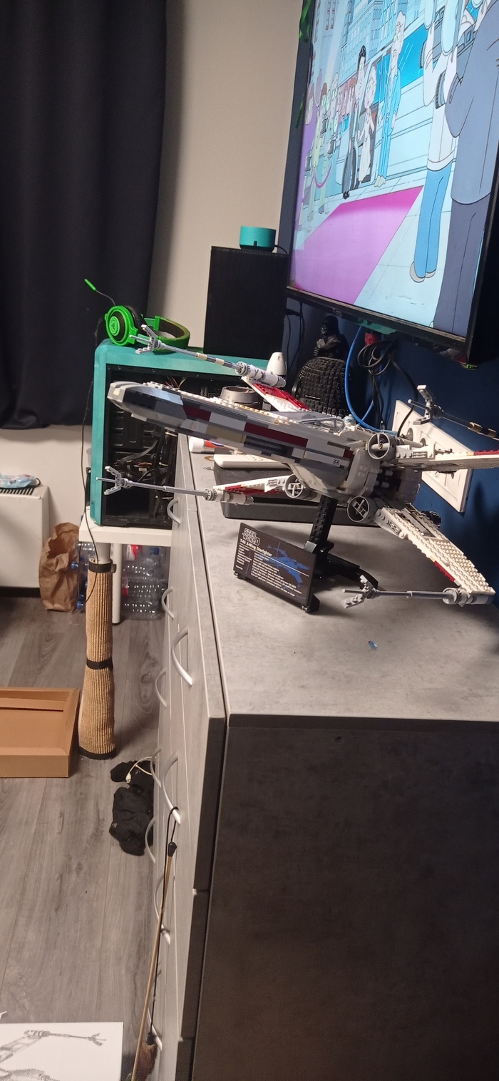 Истребитель типа тай, из новой трилогии, принадлежащий первому ордену. Является подарком от тайной снегурочки на мое второе участие в проекте АДМ от Пикабу в 21 году. Комплект был полный, насколько помню. Качество деталей местами на 5, местами на 3. Из-за этого собран на 99%. На одном из "крыльев" отсутствуют несколько деталей, в комплекте были минифигурки, где они сейчас хз😁
