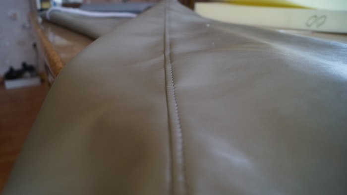 Итак отстрочка готова. "Трубы" прошивать тоже тот еще геморрой. В конце шва очень плохо видно что шьешь и можно накосчить. А косяк с таким материалом автоматически заставляет делать новый кусок. Ибо дырки не исчезнут это же касается и кожи.