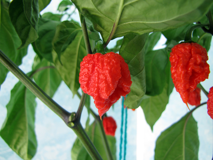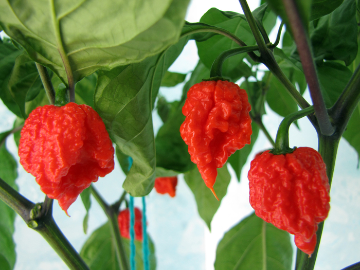 На фото: Dragon’s Breath, Trinidad Scorpion Butch T и 7 Pot Primo Chocolate.