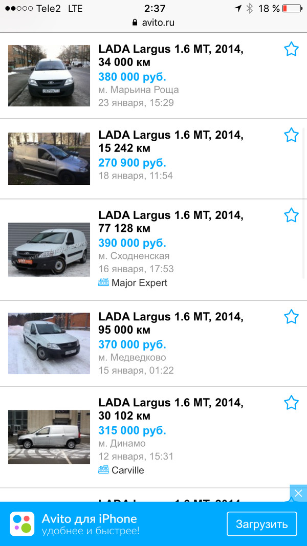 Да ну нах, подумал Я! Только один автомобиль близок к реальному пробегу. Это белый с пробегом 95к км.