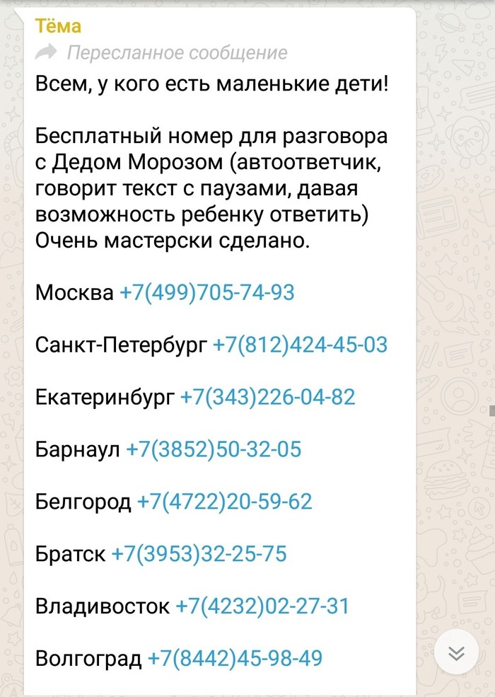 0 iceled Платный звонок Деду Морозу 7 лет назад Показать полностью 2 [моё] WhatsApp Юмор Скриншот Длиннопост