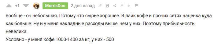 И про кофе за 500р, такая же чушь) У франшизы объемы в сотни тонн, а у ТС в 10-20кг. Экономику базовую думаю все понимают. При этом кофе я закупаю лишь чуть дешевле чем ТС.
