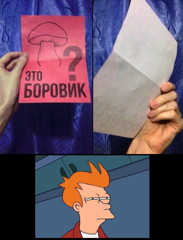 8 icosa 9 лет назад Непонятно Обнаружил в почтовом ящике такую листовку. Похоже смысловую нагрузку это несет только для создателей. Ну или может один я не в теме. Зато теперь я погуглил и знаю как отличить настоящий белый гриб от ложного. Показать полностью 1 [моё] Реклама Креатив Непонятно