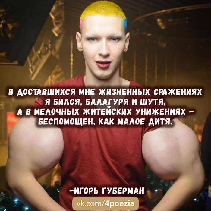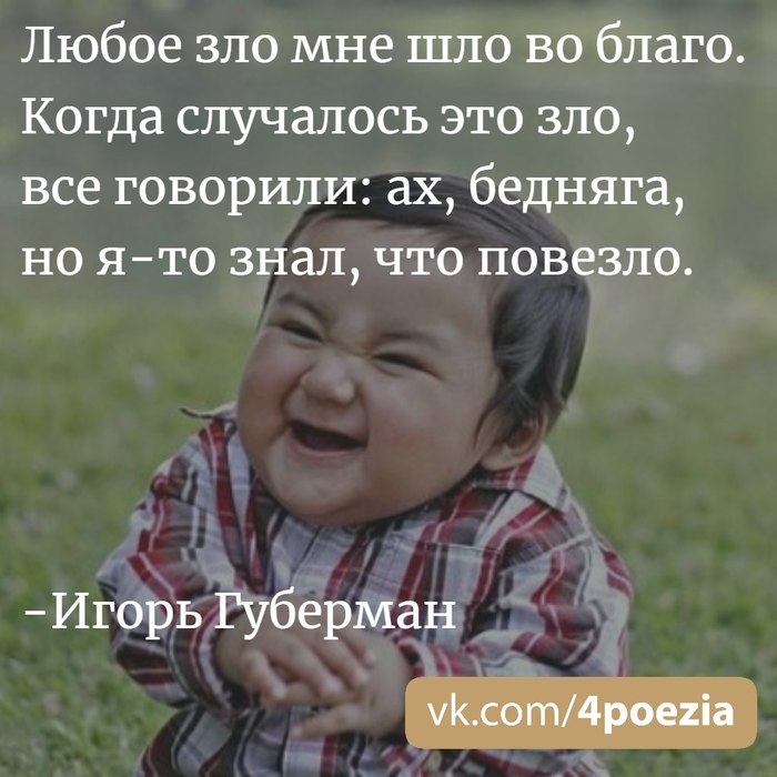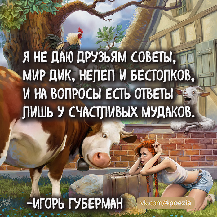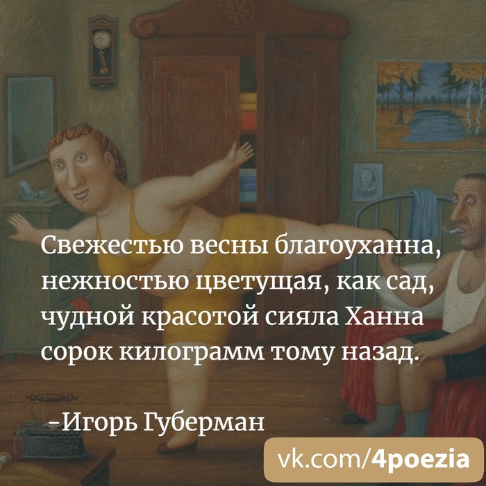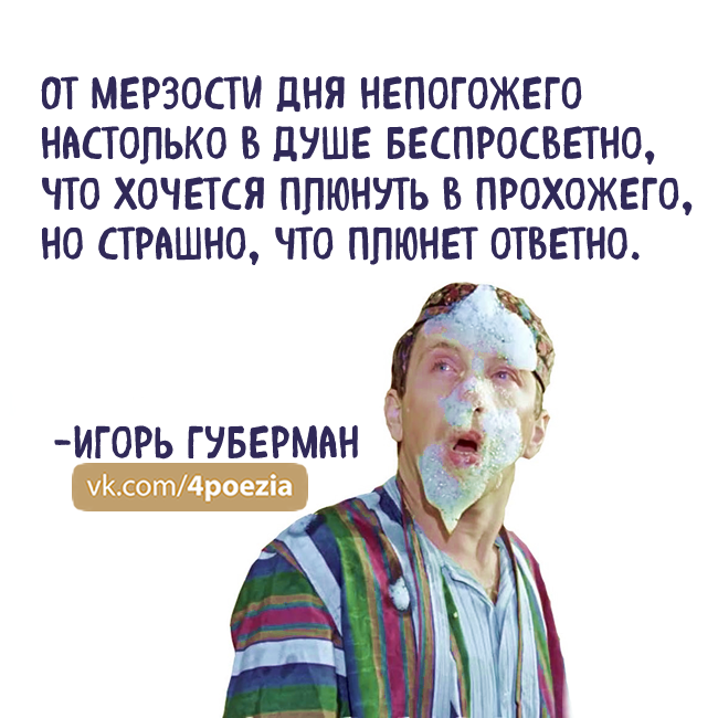 12 igor.guberman Хлесткие гарики Игоря Губермана 6 лет назад https://vk.com/4poezia https://vk.com/4poezia Показать полностью 9 Губерман Игорь Губерман Стишки-пирожки Стишки-депрессяшки Гарики Длиннопост