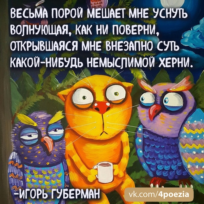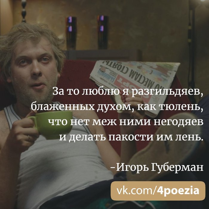 75 igor.guberman Игорь Губерман - Лучшие гарики 6 лет назад Больше тут https://vk.com/4poezia Показать полностью 9 [моё] Губерман Игорь Губерман Гарики Юмор Стихи Стишки-порошки Поэзия Поэт Длиннопост