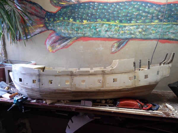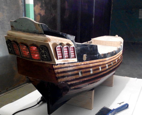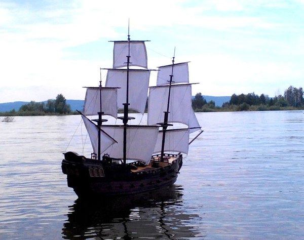 Теперь она обрела таки черные паруса, такелаж и даже носовую фигуру.