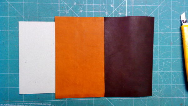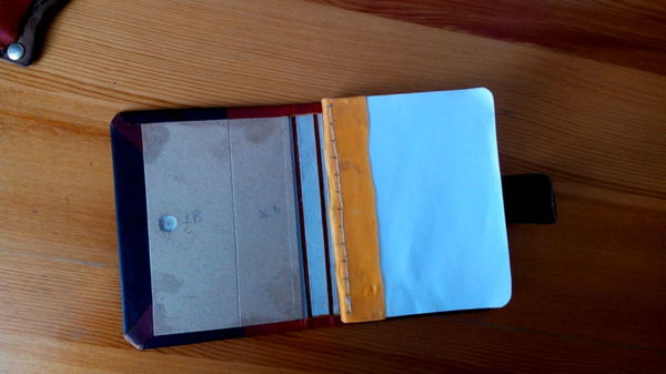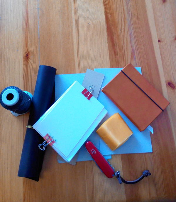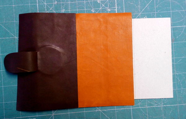 Набор для создания блокнота из кожи на старте. Рядом лежит первая попытка в этом жанре)