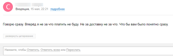 Странно было что человек после моего положительного ответа на его письмо пропал с горизонта. Но я человек не гордый, гора сама идёт к Магомету. Так что я погуглил по его почте и нашел номер телефона на одной из досок объявлений Смоленска. Спросил в СМСке будет ли забирать. Так я открыл ящичек пандоры.