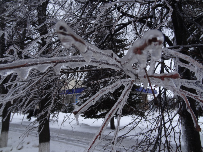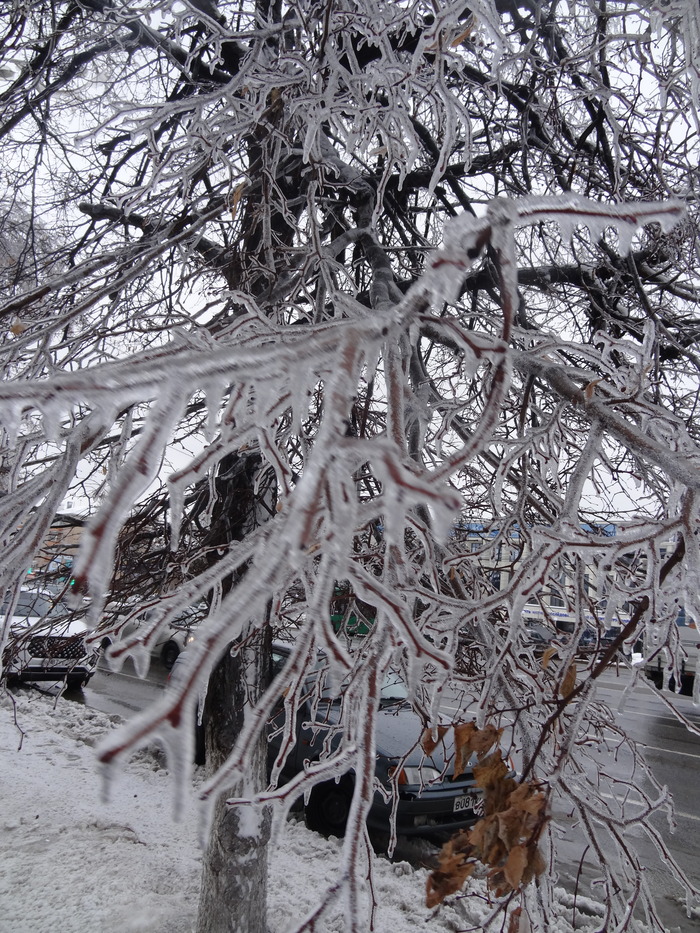 город уфа.после ледяного дождя.деревья покрыты коркой льда. 19 12 2022