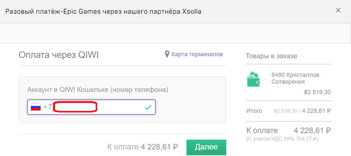 7) выбираем оплату через киви(на счету или должна быть нужная сумма, либо к кошельку нужно привязать карту)