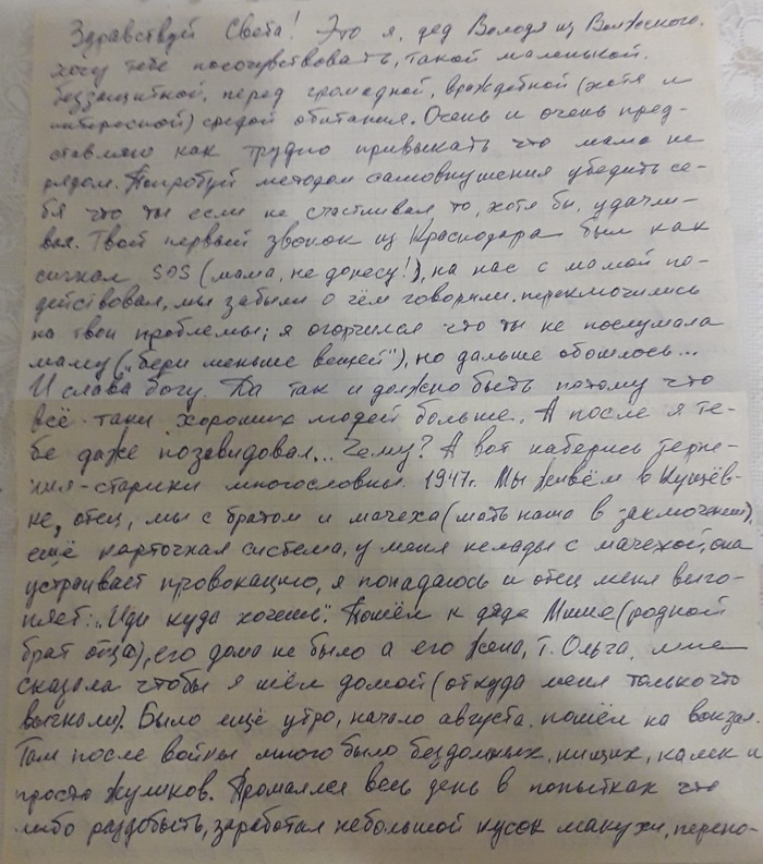 Не смотря на то что мы редко общались, с момента моего поступления в университет у нас случалась редкая переписка. Со временем письма затерялись, многочисленные переезды дали о себе знать. Однако, одно письмо сохранилось и при прочтении вызывает у меня душевный трепет.