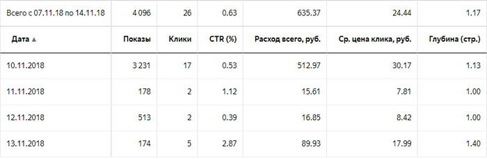 И вначале был бешеный всплеск! Более 3 тысяч просмотров за полтора часа. Только вот незадача - моё объявление показывалось всем подряд, практически без разбору. Переходы были по таким запросам как: "вкусные шпроты в масле жестяная банка", а это никуда не годилось. Бюджет съедался с завидным аппетитом, а толку по прежнему не было.