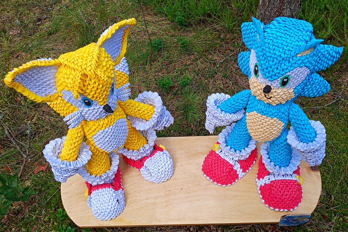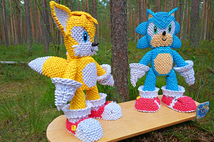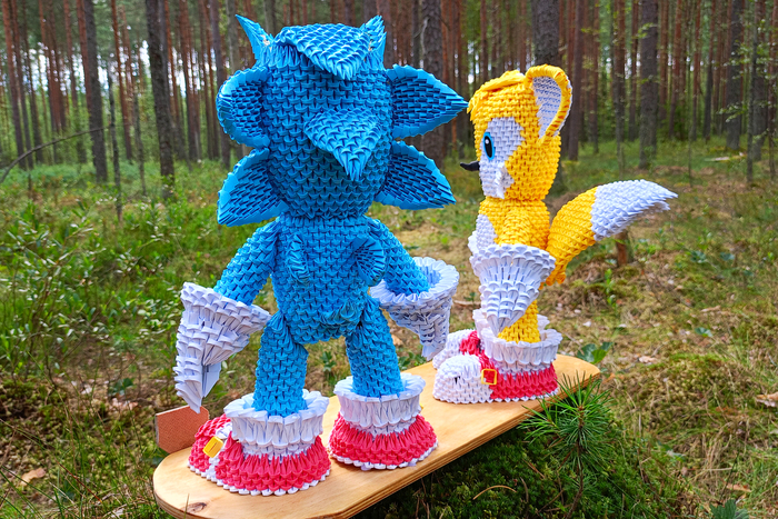 Привет! Сегодня покажу процесс сборки фигурок Соника и Тейлза в технике модульного оригами.