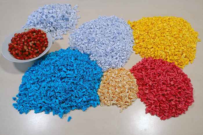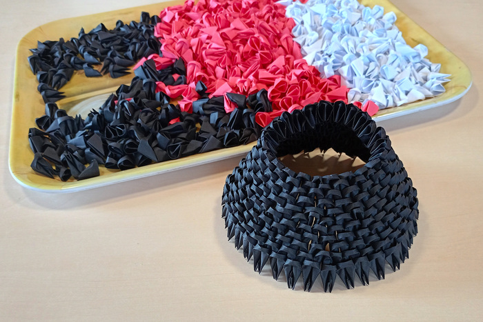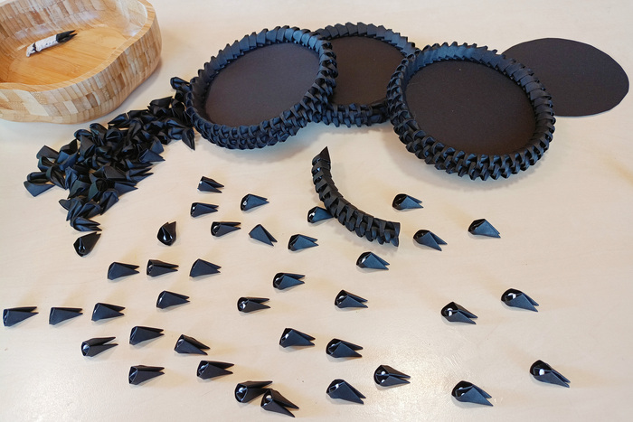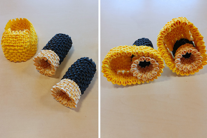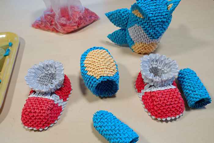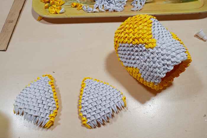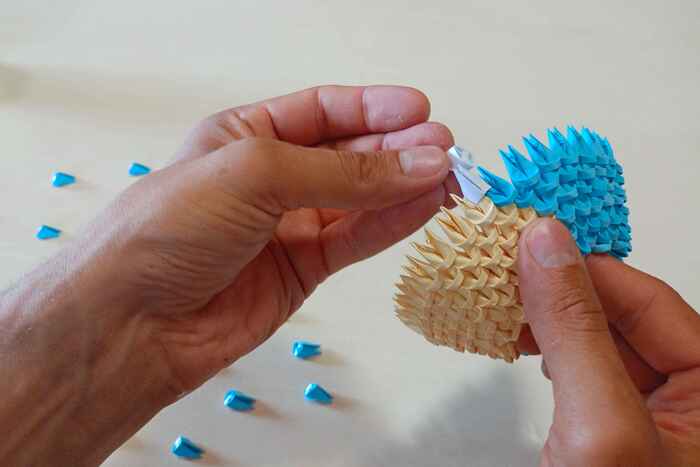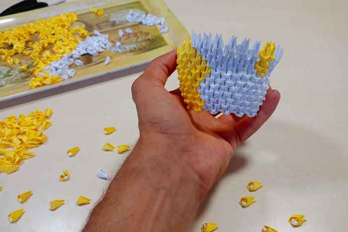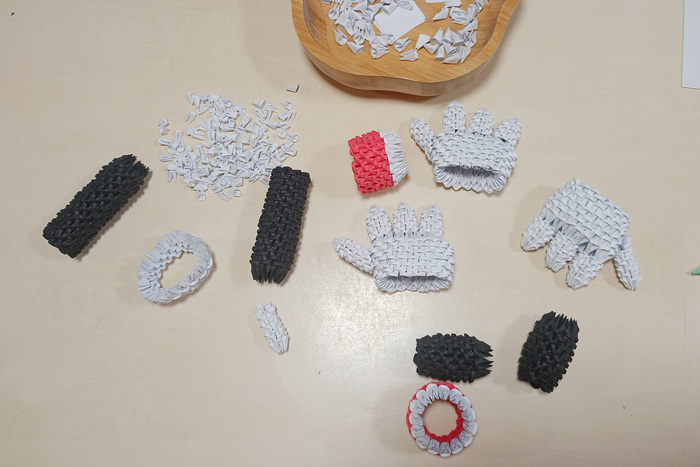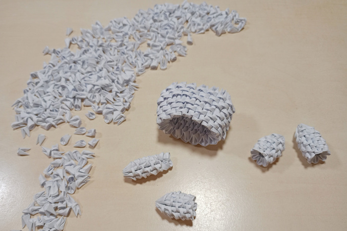 Затем из данных прямоугольников складываем маленькие модули, которые будут основой для фигурок. Нам понадобится 7450 модулей. На складывание одного модуля уходит примерно 25-30 секунд.