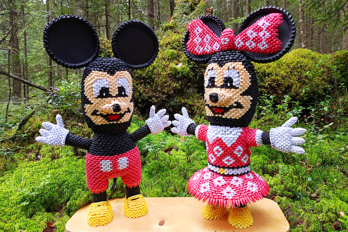 Привет! Сегодня покажу процесс сборки фигурок Микки Мауса и его подружки Минни в технике модульного оригами.
