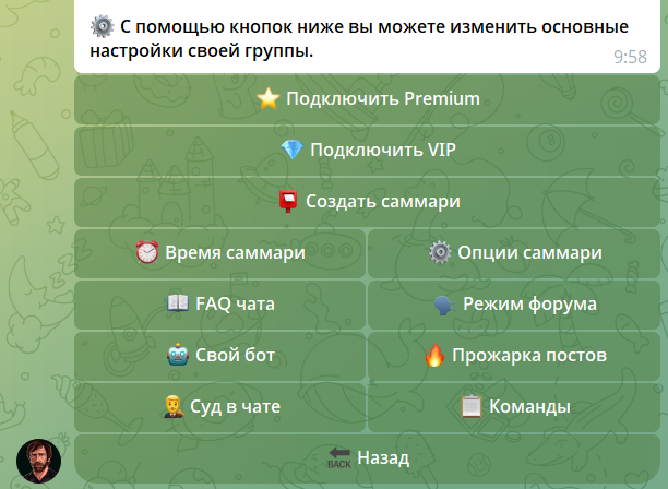 Изначально бот мог публиковать саммари только в определенное время (20:00 по МСК) и никаких дополнительных настроек не было. За год функция саммари обросла дополнительными опциями, которые можно найти в настройках бота.