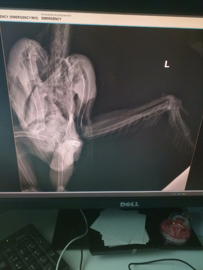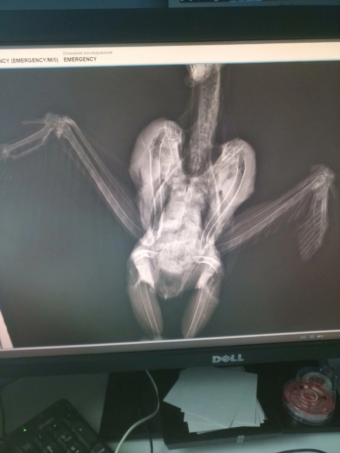 Рентген надо переделать, во вторник поедем к другому рентгенологу. Пока вроде как сказали, что увеличена почка. Крыло себя ожидаемо чувствует не очень хорошо,но надеемся сохранить .
