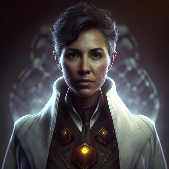 Низкорослая женщина с короткими черными волосами. 58 лет. Передовой ум Инициативы, является куратором блока «Либра». Характер непростой, во всем видит научные перспективы, и очень часто воспринимает людей как подопытных, а не как личностей. Заслужить ее уважение крайне нелегко, к полевым командирам относится как к необходимому персоналу, считая, что настоящая битва за человечество идет в лабораториях, а все остальные лишь выигрывают необходимое время.