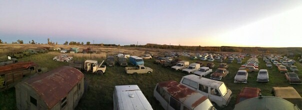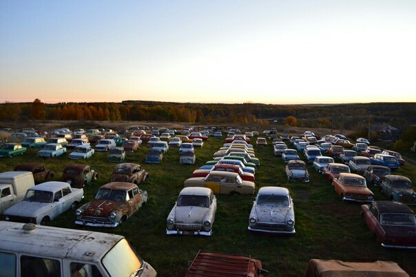 Вы представить не сможете какими тропами мы пробирались к цели (есть дорога намного лучше,как оказалось) и вот мы видим: поле автомобилей....целое поле автомобилей советского периода!!!