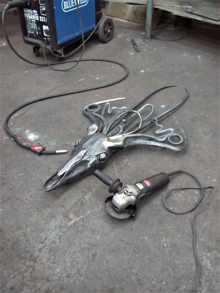 Стойка для наждака в индустриальном стиле, без использования сварочных соединений, только "олдскульная" горячая клепка.