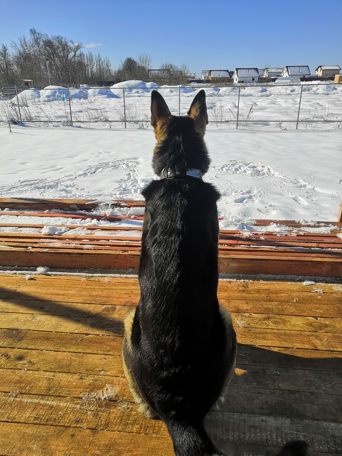 Ждём, когда ж все растает наконец. Цез чистоплюй, до вольера у него настил положен из досок, по грязи терпеть не может ходить. Будет стоят и думать, как же обойти, лужи тоже обходит. Но все равно приходит домой грязный, как кочка.