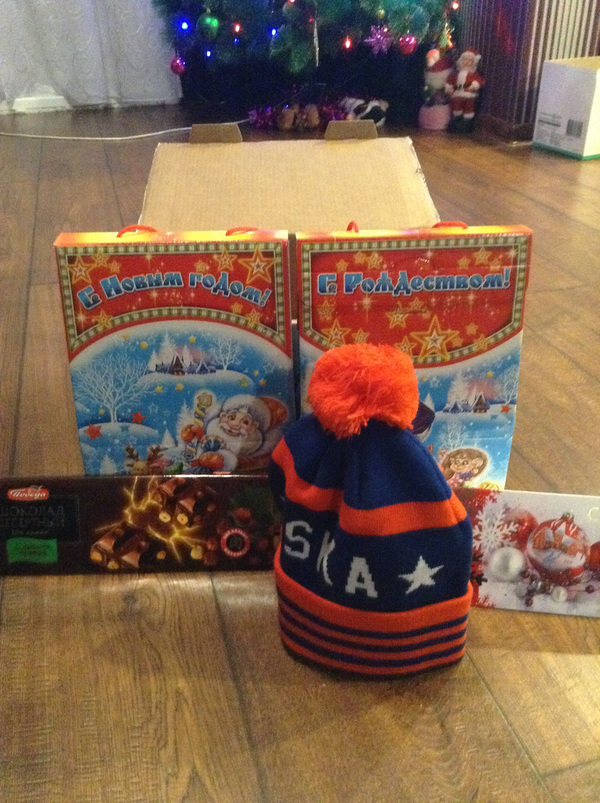 Содержимое порадовало не только меня, но и моего младшего, на фото не видно маленькой штучки с изображением символа нового года в которой находится гель-пенка для душа. Он сразу схватил эту штучку и побежал набирать ванну. Сладкие презенты тоже отправляются детям, а вот шапка отойдет мне! В своих увлечениях я указал, что болею за СКА и мой Санта учел этот момент, спасибо ему за это. Еще раз спасибо и побольше бы таких приятных акций!