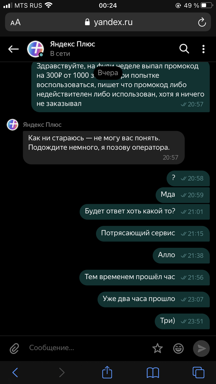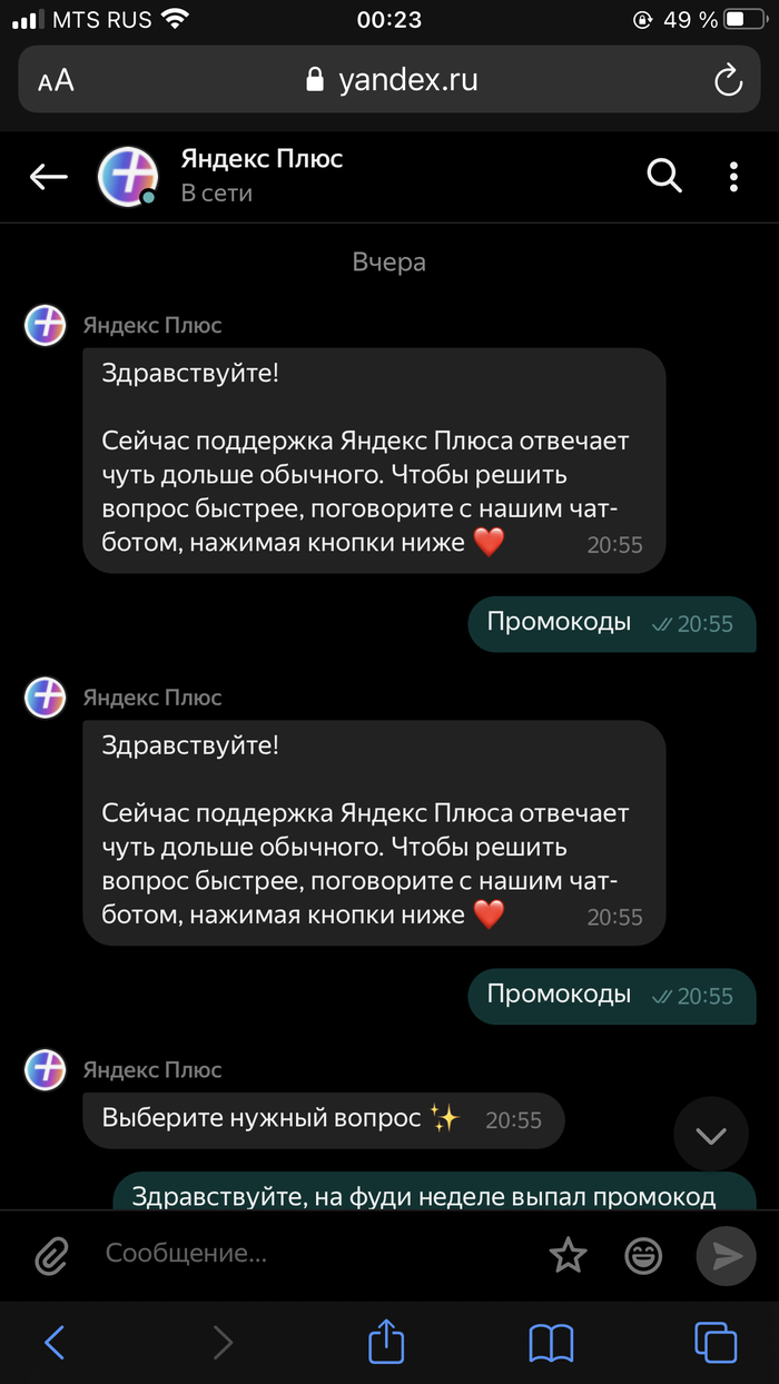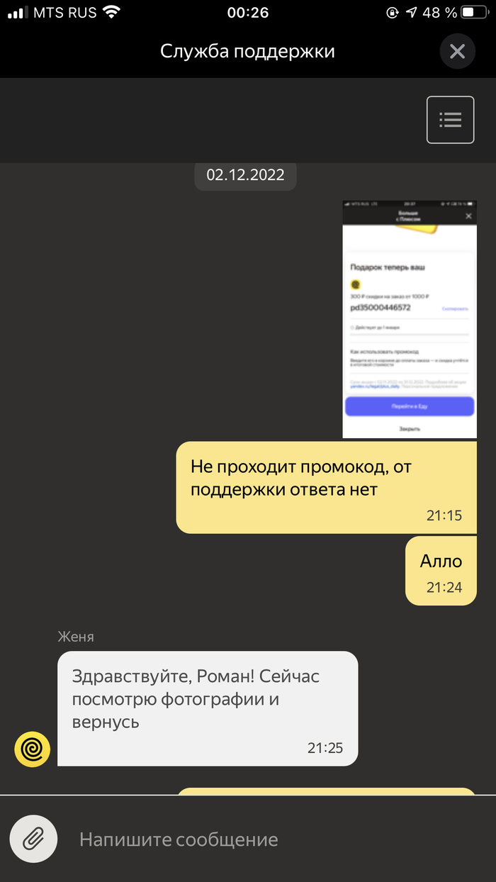 Хотелось бы добавить, что в поддержку я даже решил позвонить, ожидая хоть каких то действий. Однако там мне ответили, что это все конечно здорово, но вам нужно в поддержку в чат сбросить скрин вашего промокода (да ладно блять, спасибо что предложили, я ж не догадался) и вам там обязательно ответят и помогут, нужно только чуть чуть подождать.