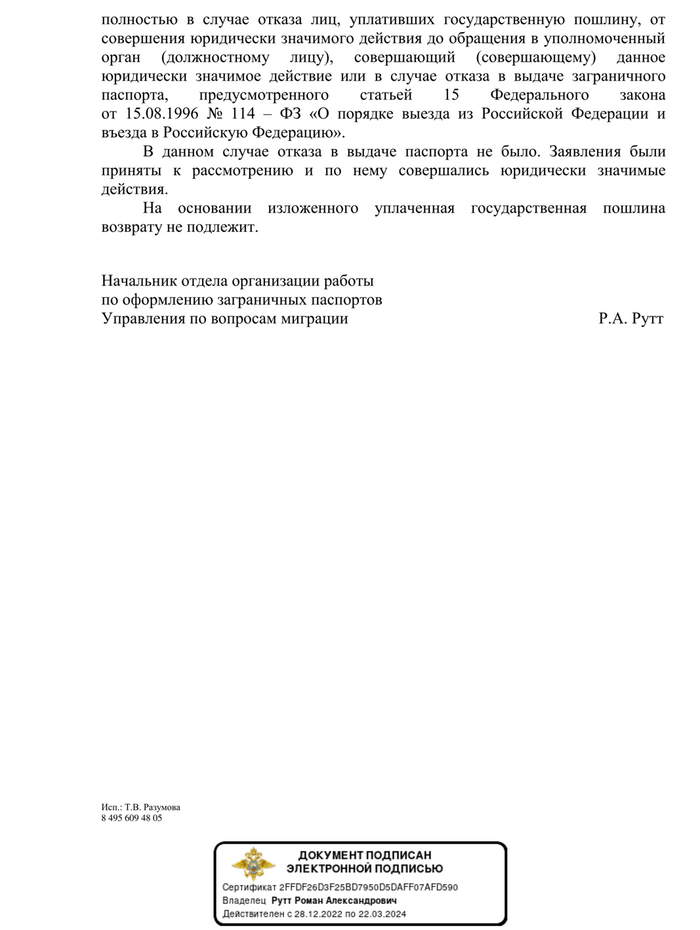 Тщетные попытки возврата госпошлины за неоформленный загранпаспорт1