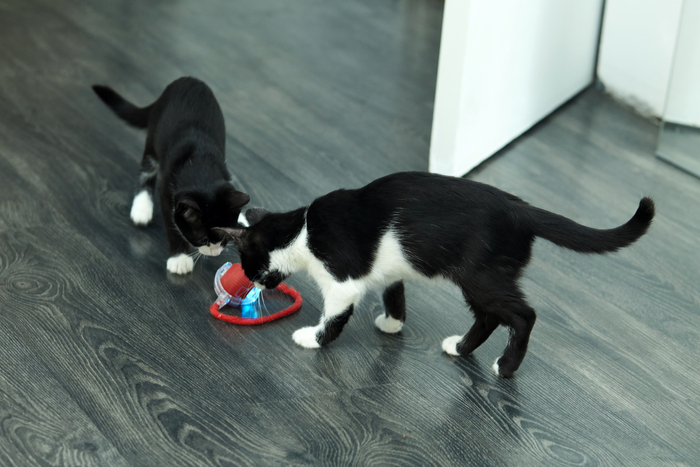 Кошечку раньше звали как-то иначе, но мы ее зовет ее Цветочек. На нее пришлось надеть воротник в виде цветочка, чтобы зажил животик