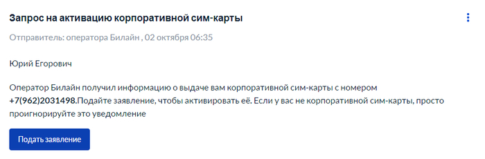 Итог: Отправлять заявление на мой взгляд не вариант т.к. а) Билайн потом ещё тыщу договоров заключит на моё имя, б) Я не знаю полный ли перечень номеров в госуслугах.