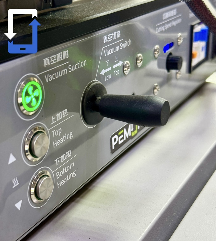 Что же до дополнительных функций, о которых писал выше? Да, они есть и полезные. В первую очередь это сепаратор с верхней и нижней нагреваемой пластинами. Обе пластины имеют вакуум, и его можно включить одновременно на обе части. Либо использовать попеременно, управляя рычагом переключения направления вакуума.