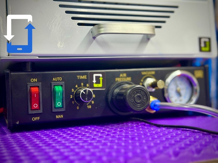 Пресс этот автоматический с таймером на время прожима и с терморегулятором для установки необходимой температуры. И, конечно же, предвкушая некоторые комментарии, что можно и руками собрать, а дальше положить нагреться на сепаратор. Да, тоже способ. Но мне крайне нравится работать на оборудовании, стараясь воспроизводить заводской процесс ремонта. Не зря же я назвал сервис «РемонтерЦех».