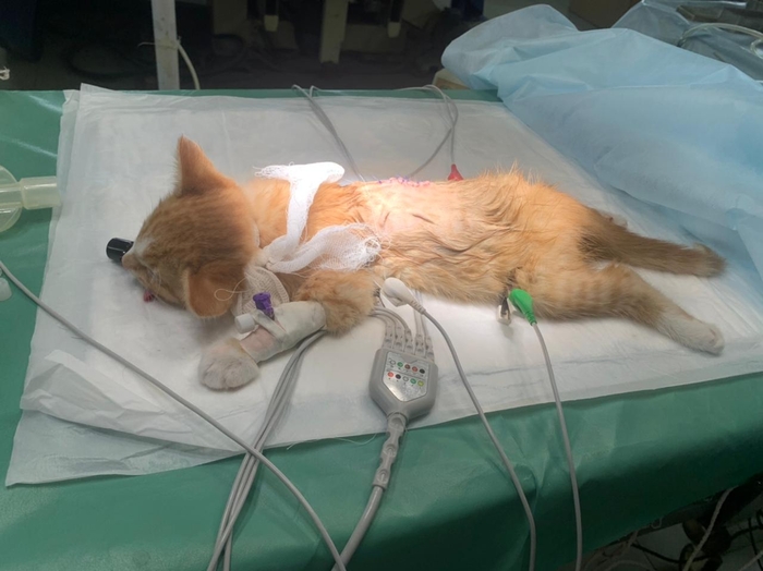 Сегодня котеючку прооперировали, он находиться в послеоперационном стационаре с интенсивной терапией. Ее ему нужно получать 3 недели, чтобы позвонки сросрослись.