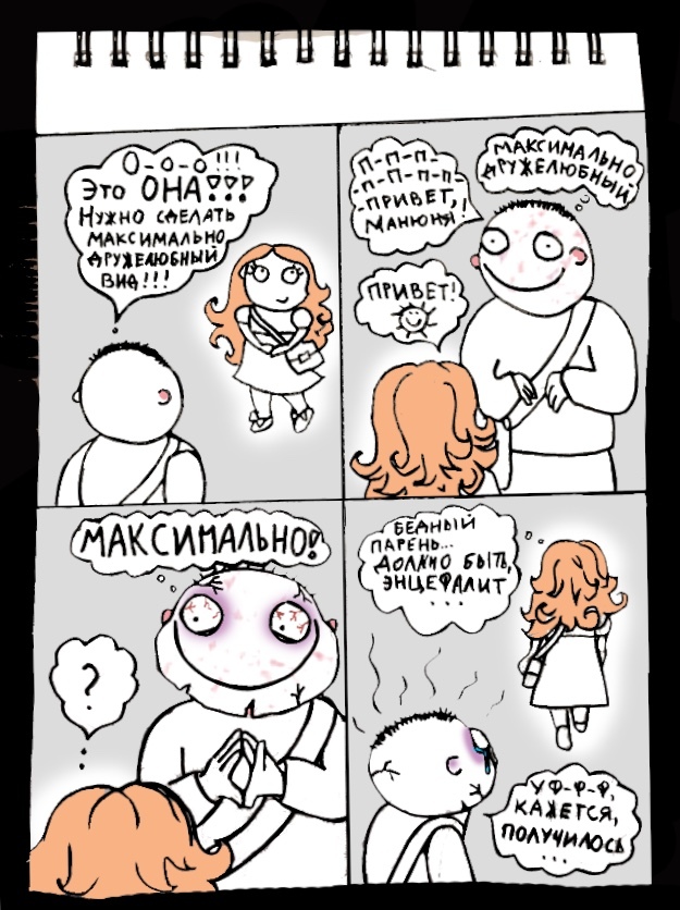 35 irinaikrina Комиксы Тайная влюбленность 8 лет назад Показать полностью 1 [моё] Рисунок Комиксы Влюбленность Неловкость Лицо