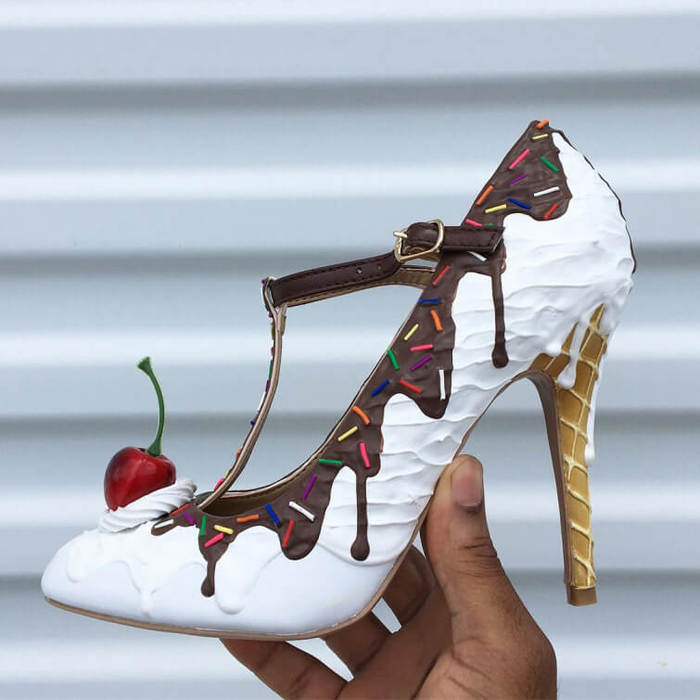 Американский дизайнер Крис Кэмпбелл из Орландо (штат Флорида) давно увлекается сладостями и обувью. Он решил объединить эти две страсти в единый продукт для коллекции "Shoe Bakery". Он создал самые разнообразные модели обуви, которые выглядят будто сделаны из мороженого, пончиков или тортов.