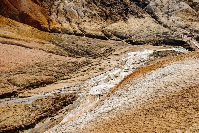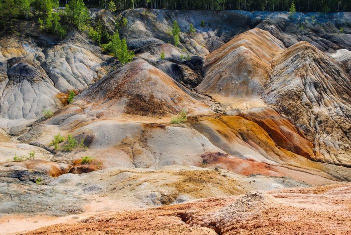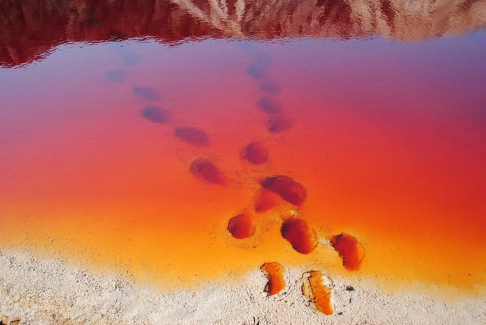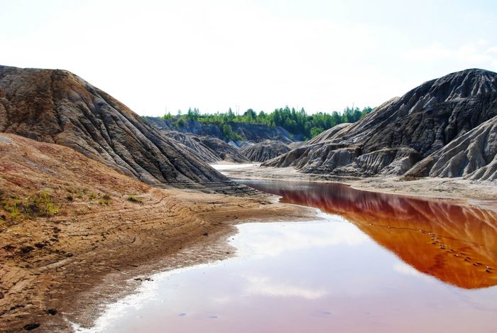 в отличии от далекой планеты, на уральском Марсе можно встретить воду, хоть и непривычной глазу окраски: от заманчивой небесно-голубой, до багряно-красной и оранжевой.