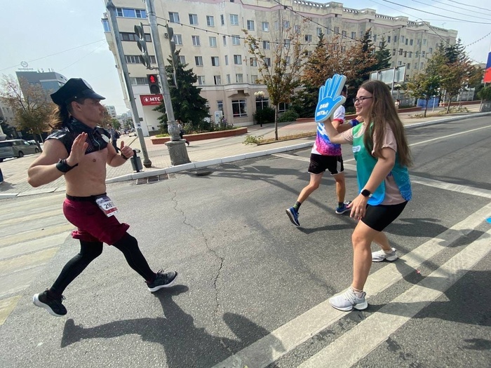 Во время самого забега, участники, выражали респект за креативность. Обычно, «пятюни» дают волонтеры, а в этот раз и спортсмены тоже!