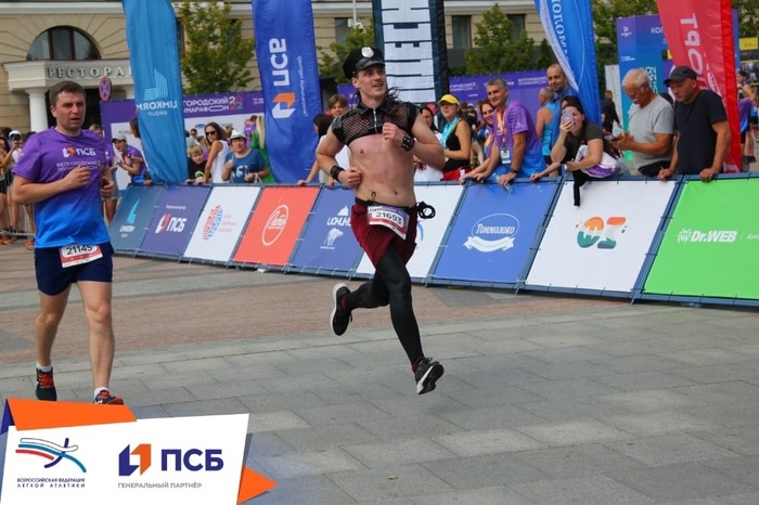 Не обошлось и без негатива. Какой-то бородатый мужик кричал мне в спину, перед разминкой, что у меня есть 10 минут, чтобы переодеться, иначе он за себя не отвечает. И уже на финише, скорее всего, он же спросил ради чего я позорюсь.