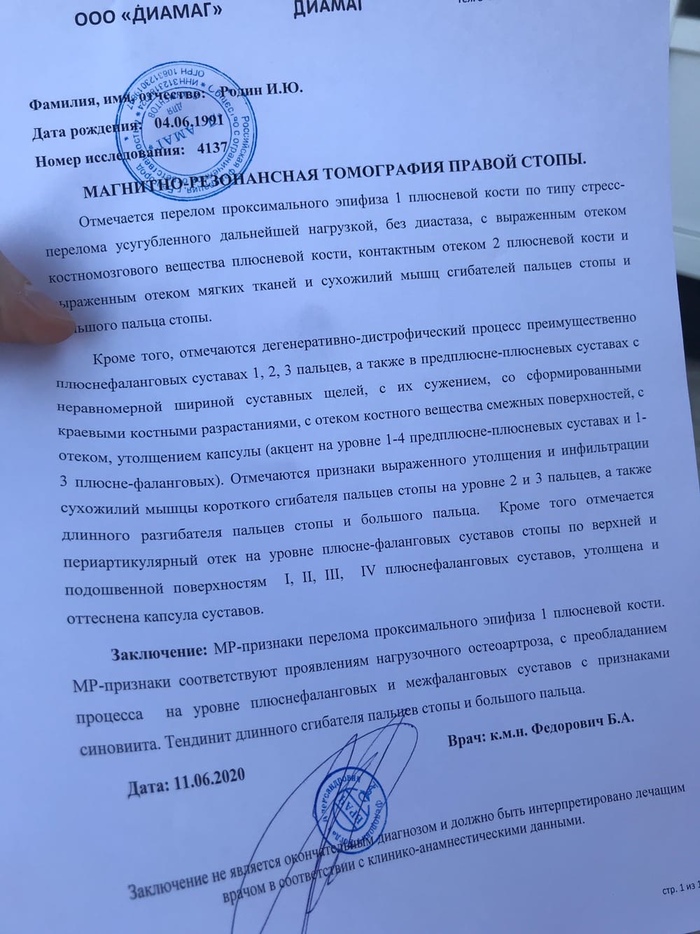 Он отправил меня на МРТ, потом глянул снимок и сказал, что я дурачок и ноге нужно дать отдохнуть месяц-другой.