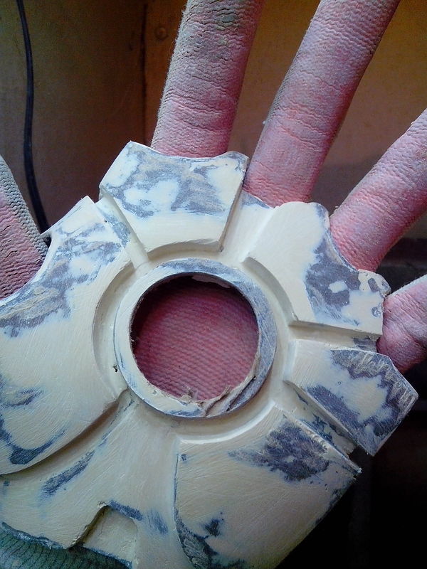 вот и первый косяк , кожух сделан из гипса и армирован бинтами , не самый лучший вариант оказался . лучше делать кожух из стекловолокна со смолой , это намного надёжнее .