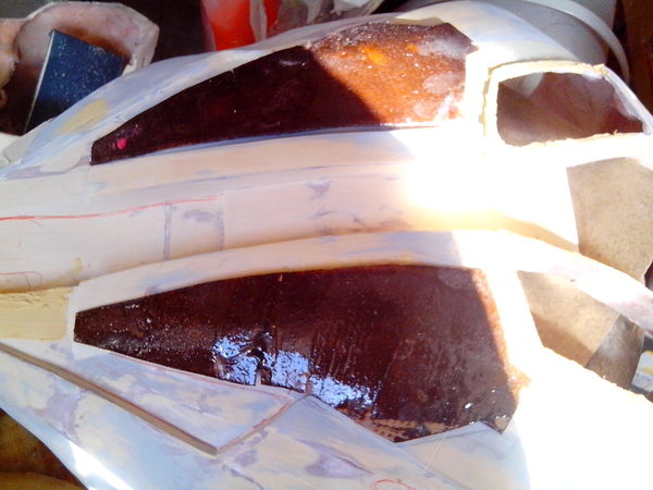 на спине решил не экономить , собрал кожух из смолы со стекловолокном , чехол состоит из 4-х частей для увеличения жесткости конструкции .