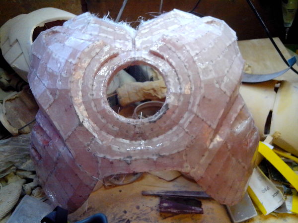сборка началась в начале января . в этом костюме я решил обойтись без гофрокртона ,только чертёжная бумага .