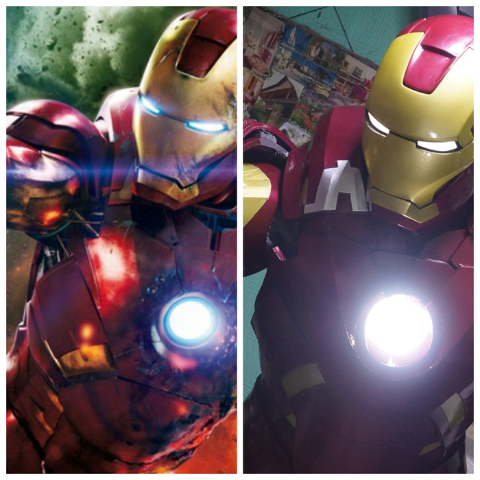 всем привет , в начале 2015 года пришёл заказ на 2 костюма железного человека , на свой страх и риск решился взять этот проект . После некоторого раздумья позвал друга на помощь .Ну и понеслось )))) тут уже мобилка чутка по лучше, как ни как 5 МЕГАпикселей