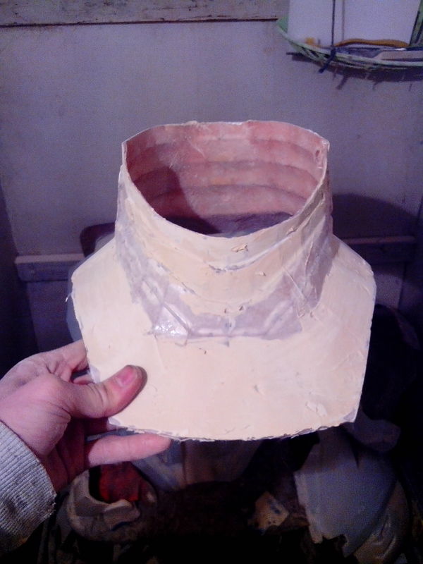 шея , тоже разрезана на две части так как по другому её не напялишь ) конечно в идеале нужно было собирать шею из эвы , но это же мой первый костюм , тут только хардкор )