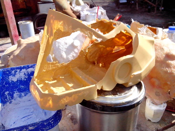 фоток процесса формования шлема не нашёл , на фото уже отлитый экземпляр )) на шлем я силикона не пожалел , потратил около 4х литов .