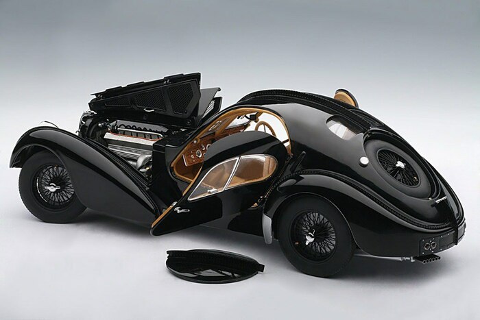Bugatti Type 57SC Atlantic - изюминка серии. Говорят, что это был первый в мире суперкар в его современном понимании. Их было выпущено всего три штуки. Кузов их был сделан из легкого сплава алюминия с магнием, тогда еще не было технологии сварки этого металла, кузовные панели соединялись клёпками, как в авиации, линии соединений грубовато-показательно были выведены наружу.