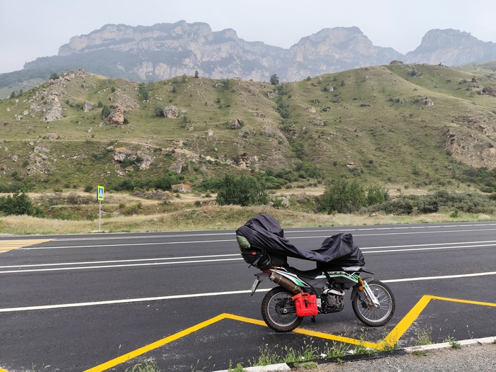 Мотоцикл не подвел. Ничего не сломалось в дороге. Даже когда закрыли дорогу через Тырныауз, после сходя селевого потока, и пришлось ехать по объездной горной грунтовке с щебенкой и лужами, мотоцикл держался отлично.