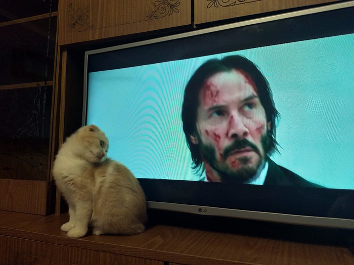 Жиру тоже не нравится фильм "Джон Уик", поэтому он навалял Киану Ривзу через телевизор.